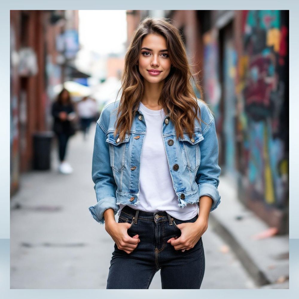 - Mix of normal cut and cropped denim jackets