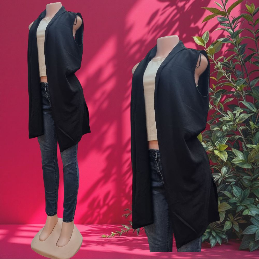 - Sleek sleeveless long coat designs for women