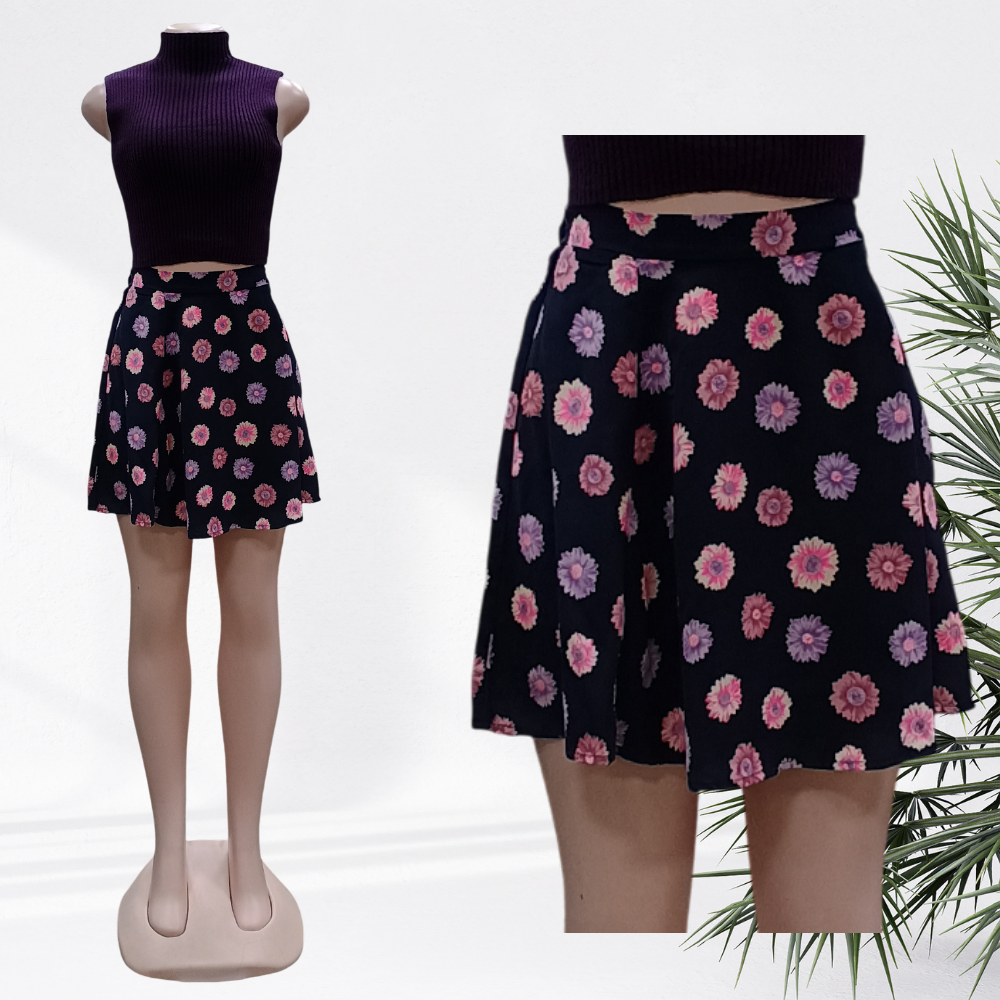 - Mix of denim, cotton, floral, and plain mini skirts
